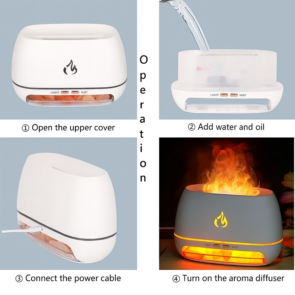 Create a calming atmosphere with this 3D Flame Effect Essential Oil Diffuser and Ultrasonic Humidifier. Designed for bedrooms, offices, or relaxation spaces, it combines aromatherapy with a soothing flame-style LED light.