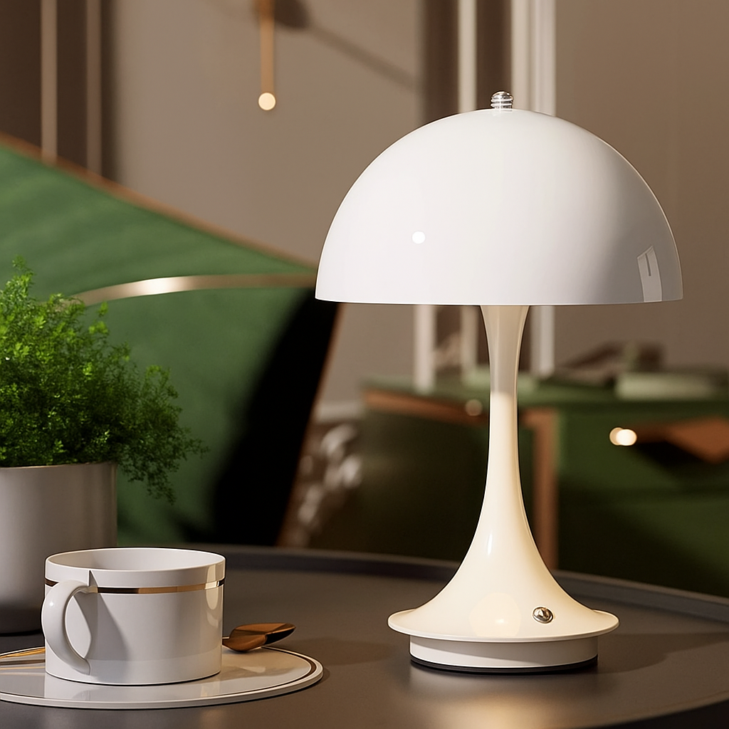 Add a modern touch to your space with this portable mushroom LED table lamp. Its high-transparency lampshade provides soft, even lighting, creating a cozy atmosphere for bedrooms, cafes, or living rooms.