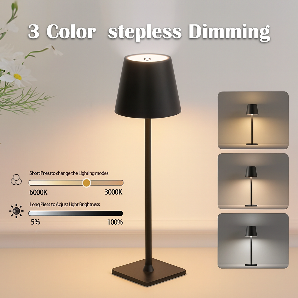 Bring modern elegance and practical lighting into your home with this rechargeable LED touch table lamp. Designed with a sleek, minimalist look, this lamp is perfect for bedrooms, living rooms, cafés, or outdoor settings.